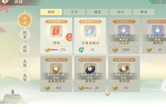 1、通过限购商铺获取,当玩家等级达到50级的时候,可以解锁精炼石的购买链接,玩家可以花费20个元宝购买一个精炼石,每周限购100个。