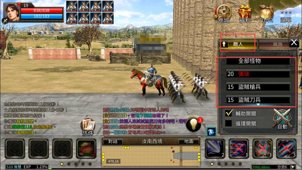 三国群英传M在介面上进行了便利的优化,手机版本点选怪物难度比较高,所以有特别设计了索敌功能。