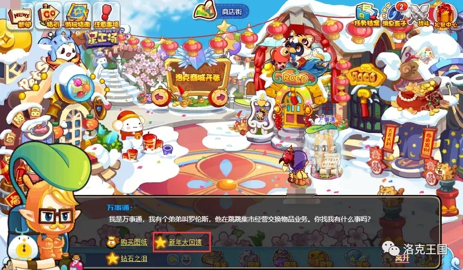 让我们一起来商店街找到万事通,选择“新年大回馈”即可打开活动界面。