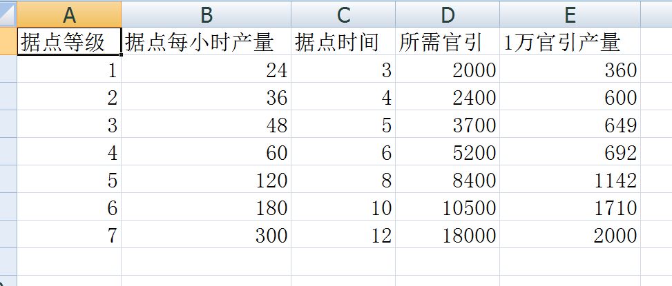如图,通过表格,我们可以清晰看出,据点等级越高,收益率越高,但相对的,风险几率越大(高级据点稀少,竞争大,容易被大佬打,人财两空)