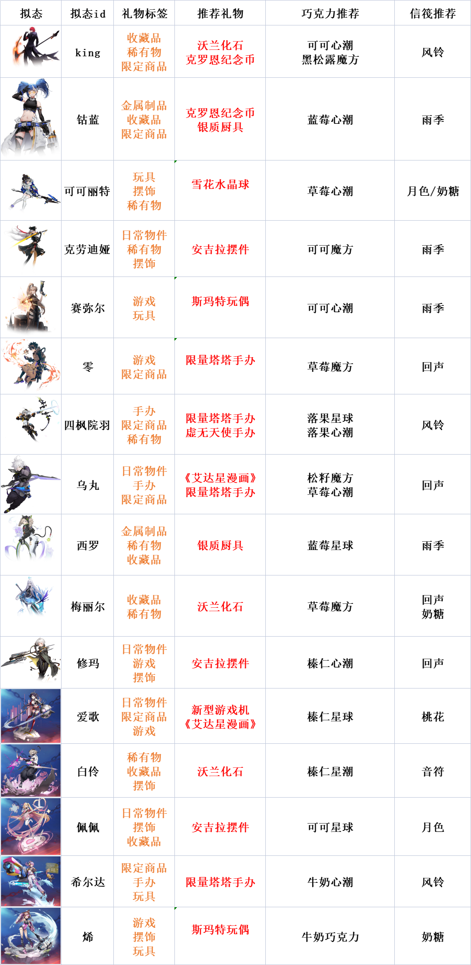 幻塔最近上线了甜蜜工坊活动,很多小伙伴都很想知道在甜蜜工坊中每个角色都喜欢什么礼物,对此,不了解的小伙伴,那就快来看看小编给大家准备的相关游戏内容吧!