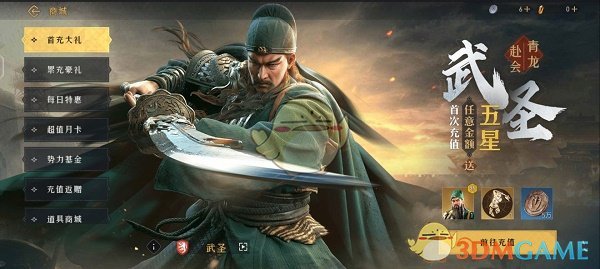 1、首冲豪礼不可缺少赠送武圣,三国名将关云长,一夫当关万夫莫开,纯输出暴击英雄,稳定输出提升普攻输出效率,额外赠送五星技能致命一击!