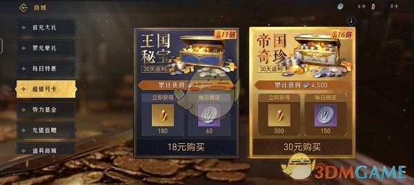 4、月卡【必买推荐活动】可以返十几倍帝国币,很划算!