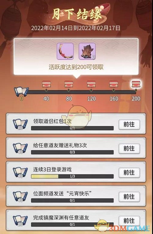完成一系列福缘任务,可获取梅花主题相框、元宵、探宝令等奖励。