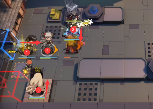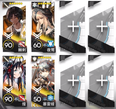 如图所示部署:棘刺(向右)→ 煌(向下)→ 夜莺(向上)→ 塞雷娅