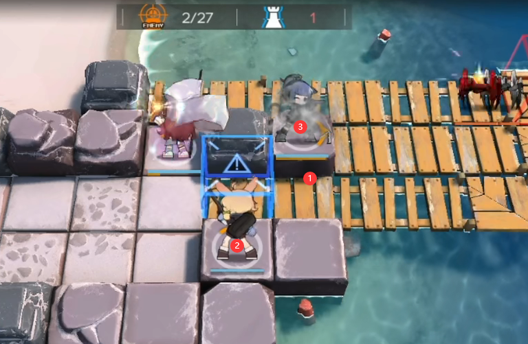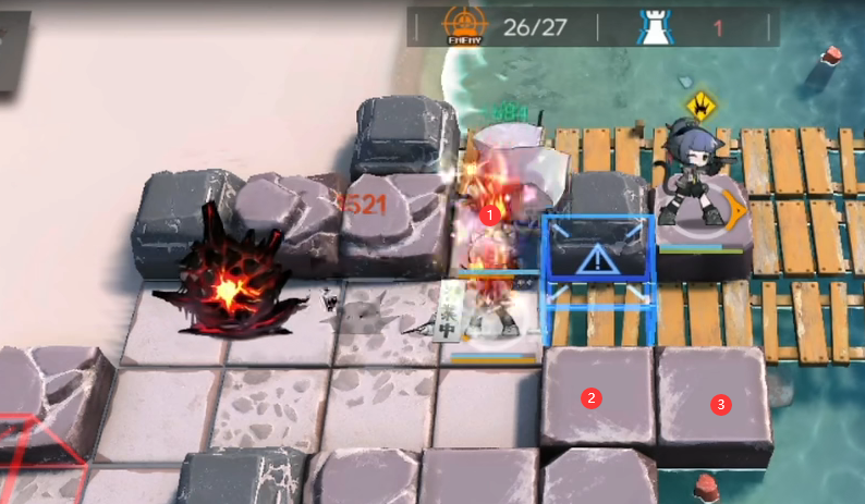 5.孑再部署CD好了放在下图位置吃炸弹,然后撤退。