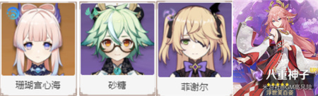 珊瑚宫心海+砂糖+菲谢尔+八重神子