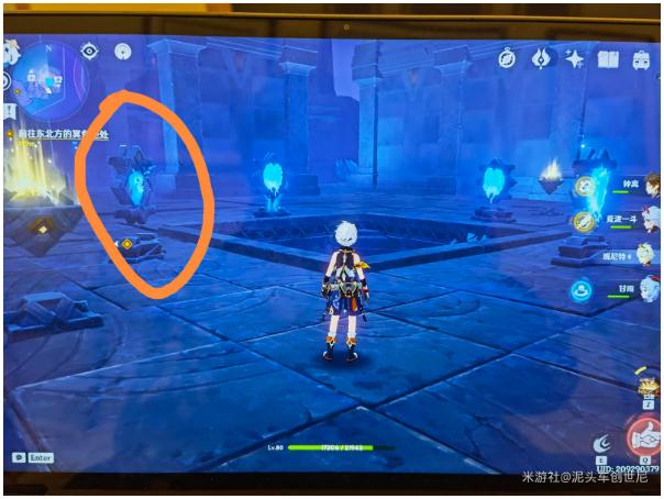 然后再把图中圈出来的机关,也就是那个可以调节方向的机关变成冰即可