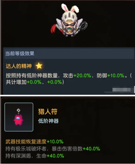 流派核心在于特权:达人的精神以及低阶神器:猎人符