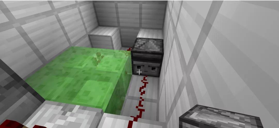 主体电路基本搞定,在粘液块上放置我们想要的方块就可以了,放个拉杆看看效果~