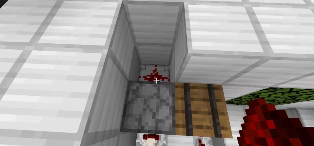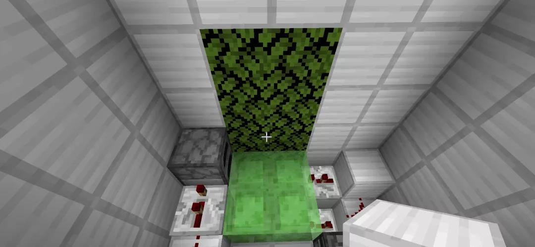 除了我们的电路外,将所有可能与粘液块接触的方块替换,换为不受粘液块影响的方块。如树叶、黑曜石、熔炉、投掷器等,都是不受粘液块影响的,这里小官微选择了较为便宜美观的树叶