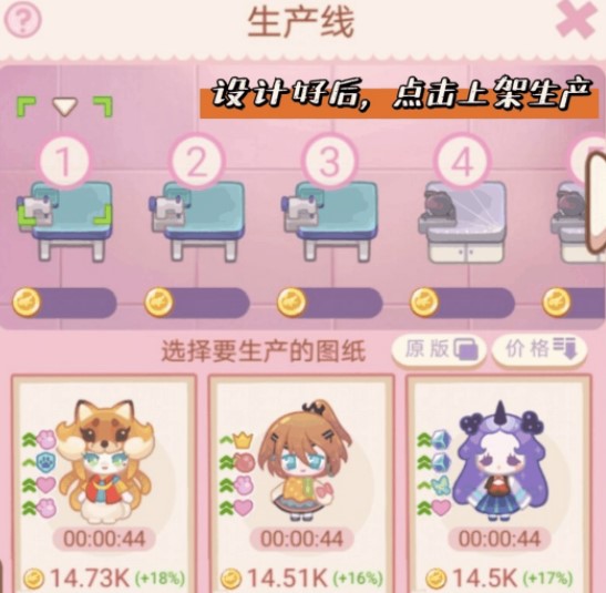 将设计好的图纸,到【生产】页面开始制作!制作完成后,就可以投入售卖啦~