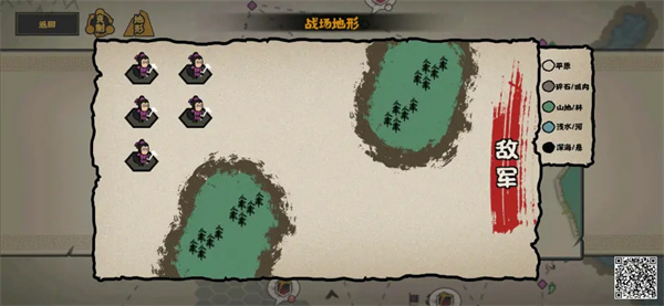 4、当与车骑枪兵作战时,移动聚集于地图右上角的山地最上方,车骑进入狭长的山地会将冲锋状态消耗掉,枪兵进入山地无法架枪;