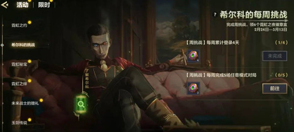 2、一共是两个任务,第一个任务是周挑战,每周累计登录四天,这个就很简单,登录游戏四天就好了;