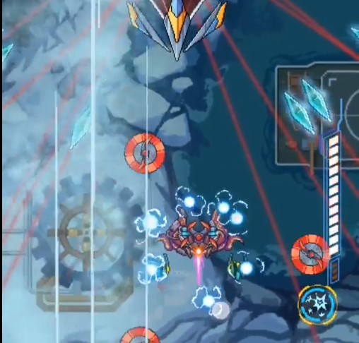 作为开局第一个BOSS,强度还是挺高的,BOSS总共有五个部位(两肩炮一主炮两副炮),使用贯穿武器有奇效,输出高可以优先打掉主炮,防止能量炮封路(带贯穿可以顺便打掉肩炮),增加走位空间,打掉副炮可以极大地减少弹幕,打掉肩炮会使激光失效(这玩意儿还是挺烦的,封路一流),变异相对于常态而言难度提高了两个档次(毕竟常态不会转向),特别是发射弹幕和激光时会调整方向,很考验反应能力,建议副炮发射时尽量引诱使BOSS方向与屏幕呈45°角,然后缓慢向另一方向移动(移动过快BOSS会调转枪口)