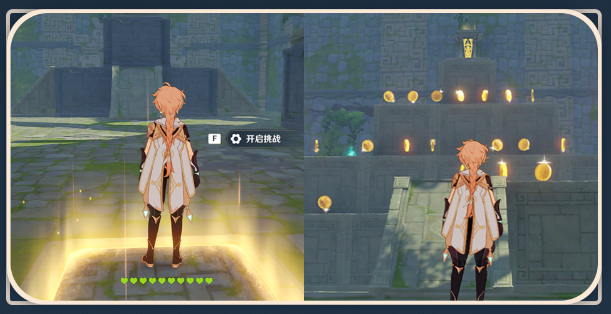 在挑战的过程中,有些机关会使得旅行者受到元素附着,有些会削减一定数量的生命点,其中【永燃平台、幽水平台、凝冰平台、闪雷平台、永燃地面、幽水地面、凝冰地面、闪雷平台】属于元素附着陷阱,【方形元素飞机关、环形元素飞机关、烈焰机关】属于削减生命机关,旅行者需要注意机关启动时间,躲避各类陷阱。