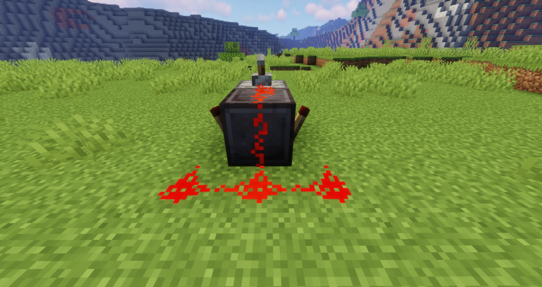 在普通方块两边放置红石火把,并用红石粉将拉杆与红石火把连接起来