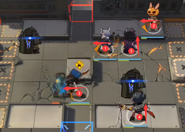 1.开局部署先锋(向左)→ 单狙(向左)→ 棘刺(向左)→ 单奶(向上)→ 远卫(向上)。