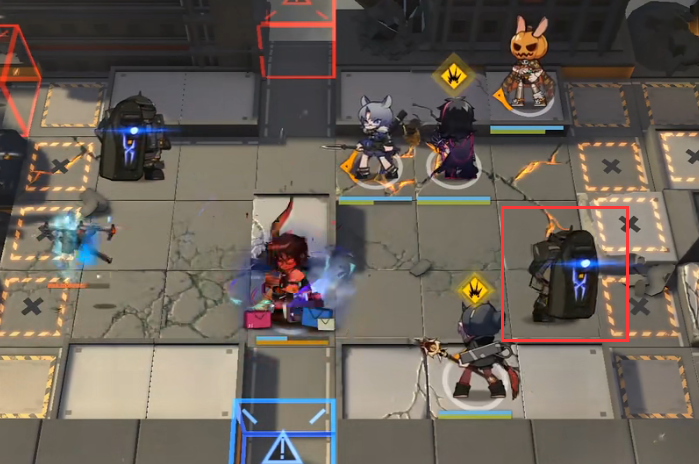 最后一个盾卫脚底藏了一个弓箭手,因此我们在撤退时需要留一下棘刺,剩下的盾卫放进家里和博士贴贴即可。