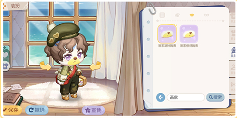 枣红色帽子随性地扣在羊毛卷棕色长发上,一手调料盘,一手画具包。紫色爱心瞳孔,脸上还不小心沾到了一点颜料,调皮又呆萌。