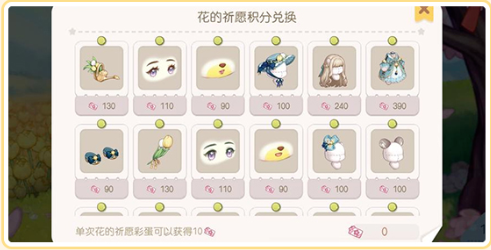 PS:花的祈愿中就含有上述时装和家具,且典藏和晨星的概率都是50%。每次祈愿都可获得10积分,卡池内任意物品都可使用积分兑换~