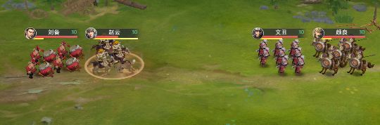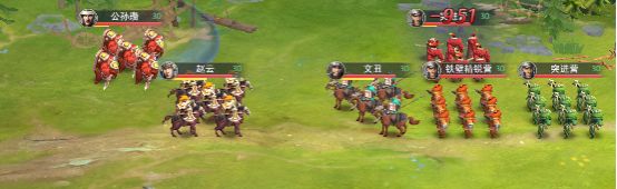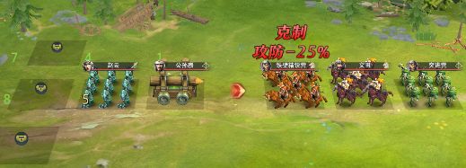 公孙瓒站在4号位抗对面6号位伤害,赵云使用骑兵对对面2号5号8号位一起进行输出