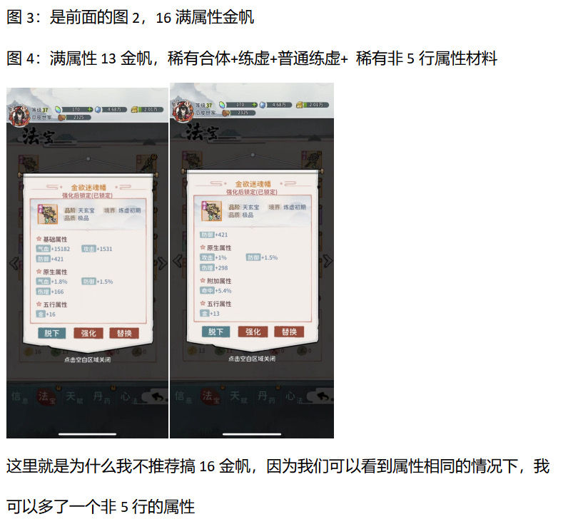 1、五行和属性怎么进行取舍(针对练虚橙色装备数值上的差别)以金幡为例子