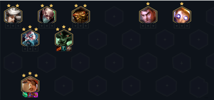阵容组成(从左到右,从上到下):卡密尔(1)、辛吉德(1)、泰达米尔(3)、杰斯(5)、布里茨(2)、基兰(2)、沃里克(2)、奎因(2)