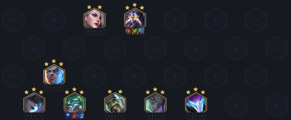 如果2-7没有赌出三张三星一费卡则等到4-1打完野怪再冲一波,都三星之后就直接上人口,如果有同行三星无望可以考虑拆掉梦魇乌鸦开三变异养蚂蚱,火男和卡萨丁保证中期强度,4-3拉七看情况提升阵容质量存钱准备上八。