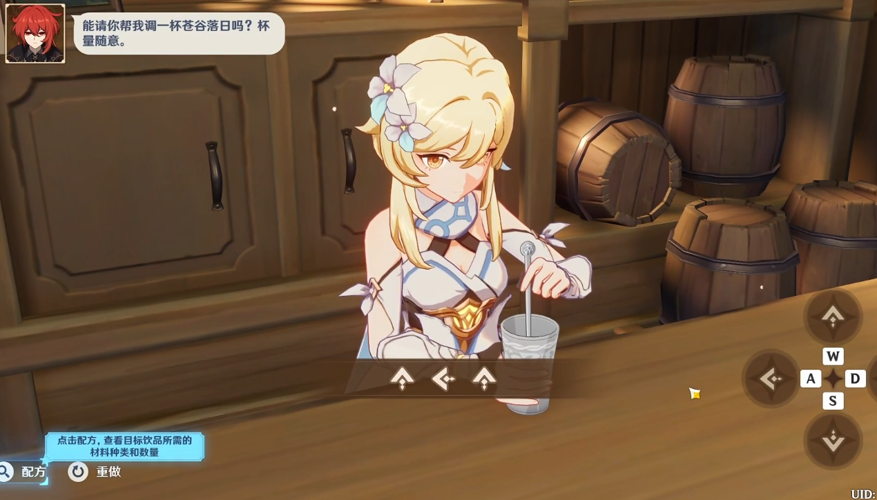 1.首先我们开启任务,在和迪卢克对话后开始调配饮品。