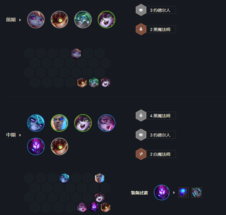 这版本高黑魔收益高,有黑魔+1,+2,直接无脑拿,准没错;开局升级咯无脑拿,后面来的话,高端购物会更好;妙手空空或二进制这类海克斯都可以增加这套阵容的上限;蓝电池、冥想、源计划链条都能加快回蓝,很适合黑魔这阵容。