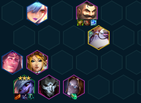 5-5之前拉8,8人口大D2星4费卡,没有喵咪先上璐璐开4白魔,容错不高了的话建议在8人口玩到死追3星宝石。有狙神转可以给发条,下宝石上女警开4狙神,有条件上9能补杰斯开2执法;有白魔之心9人口补璐璐可开5白魔大提升。站位尽量跟对手站对角,切记不能跟永恩站在同一边,布隆尽量顶在对手C位的脸上早点打控制。