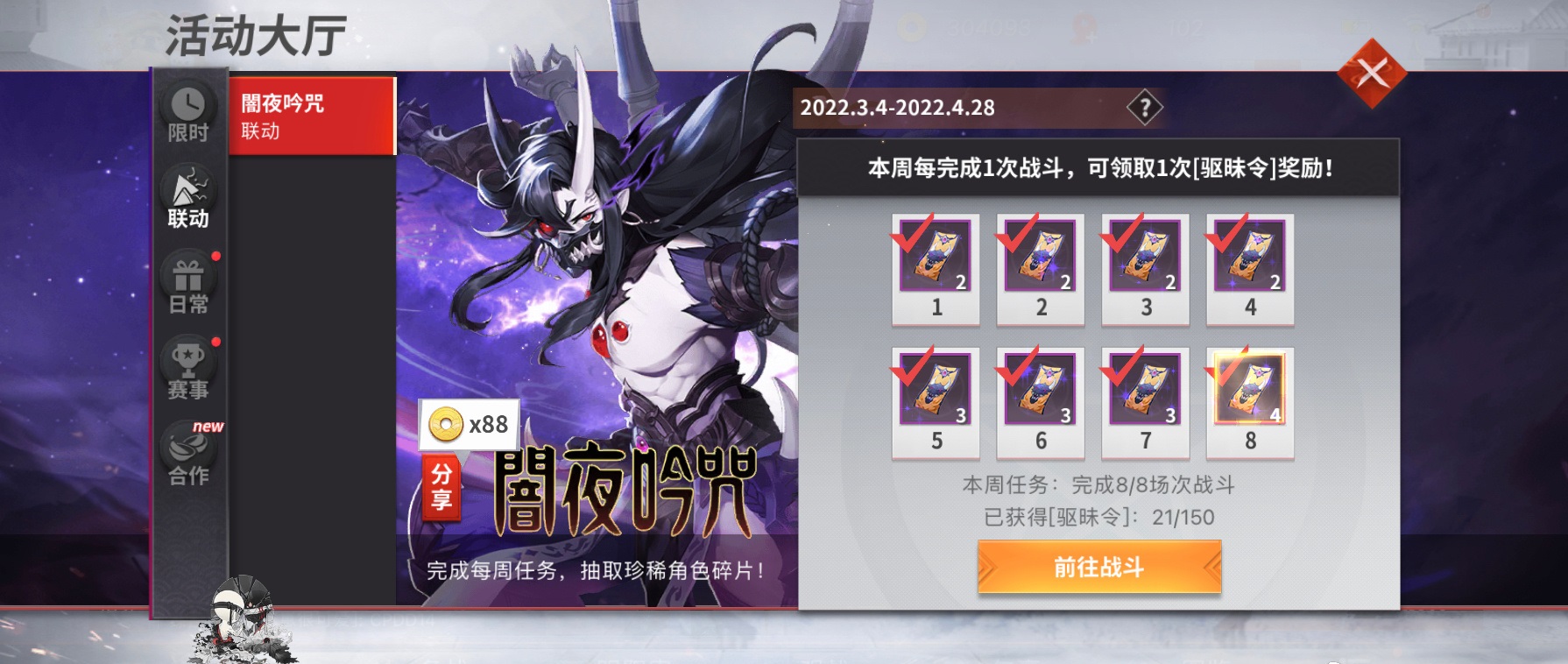 预热活动【闇夜吟咒】:2022.3.4-2022.4.28