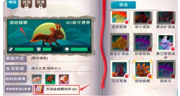 《创造与魔法》熔岩蝾螈饲料配方保底