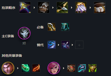 副C蔚:装备给上反甲,狂徒,龙爪。