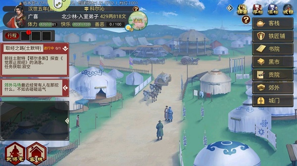 1、到达乌斯藏都司后寂空会教你西域语言。前往寺庙后得知两派的关系势同水火,按剧情提示前往白利。