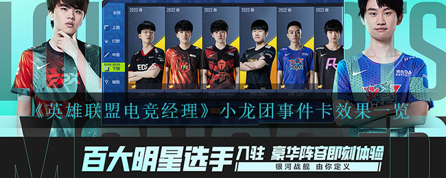英雄联盟电竞经理已经正式开启测试了,那么其中很多小伙伴都很想知道小龙团事件卡都有什么效果,相信还有很多小伙伴不清楚,对此游戏爱好者小编特地为大家准备了相关的详细内容,让我们一起来看看吧!