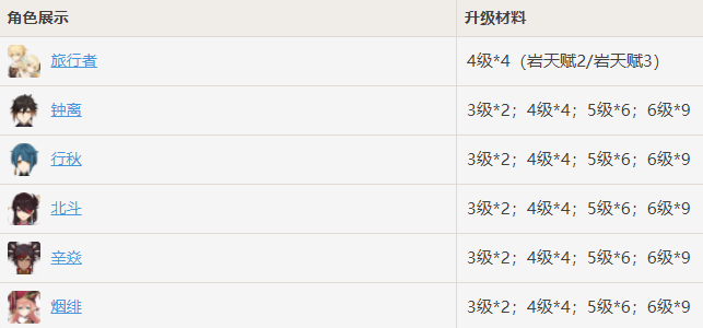 旅行者(岩)、钟离、行秋、北斗、辛焱、烟绯