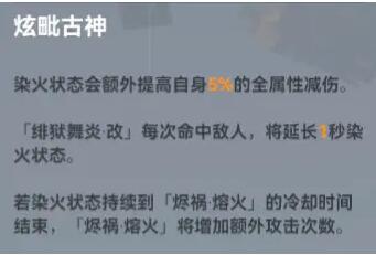 持续染火是这个分支最大的特色,可以使技能全程附带染火效果的加成。