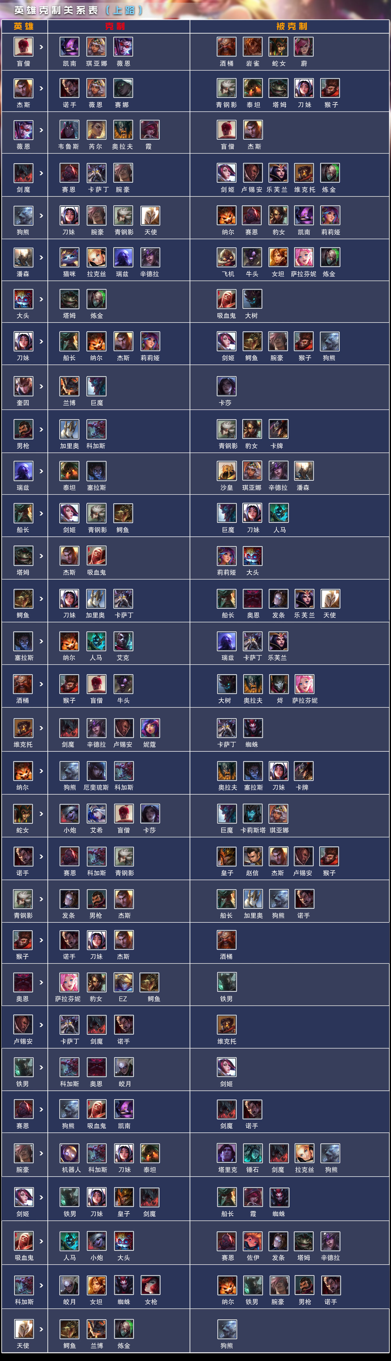 《英雄联盟手游》电竞经理上单克制关系一览