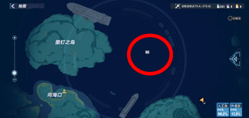 首先我们会被传送到双子岛北,然后我们找到东南小岛上的传送装置,如下图。