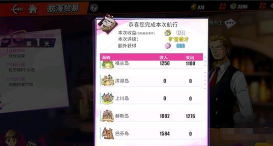 将价格接近底价的高性价比货物收入囊中,然后在中间岛出售,单价+5利润已经很高了,再酌情选择中间岛的底价货物购买,船舱一定要堆满。然后到下一个岛,重复这个步骤,基本上到目的地第五岛都能赚的盆满钵满。