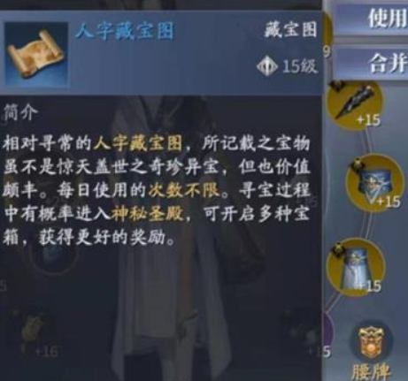 1.天字藏宝图需要使用4个天字藏宝图碎片合成,碎片的来源为人字藏宝图的宝箱、神庙使者、惩凶等活动的稀有掉落等。