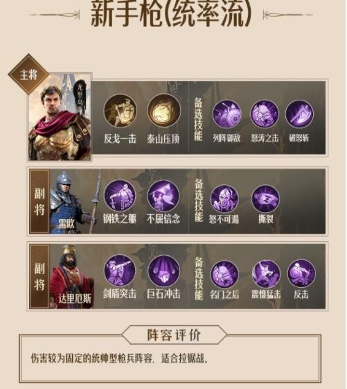 《重返帝国》统率流新手枪阵容搭配推荐