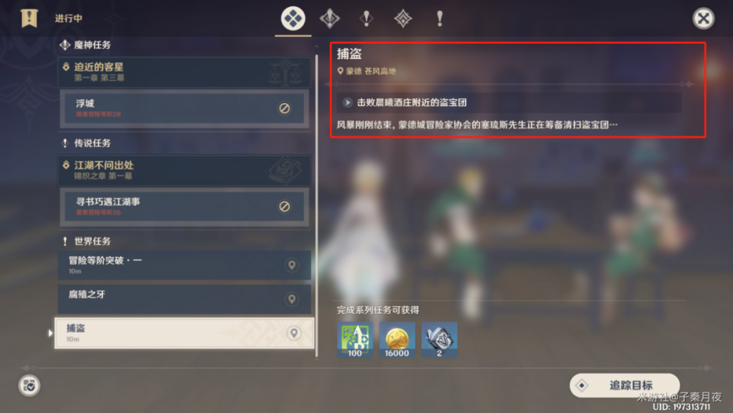 查看任务:风暴刚刚结束,蒙德城冒险家协会的塞琉斯先生正在筹备清扫盗宝团....