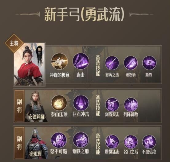 前期易获得,成型快。以魏兰为核心打出高额伤害,副将辅助输出。