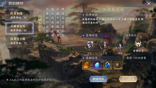 1、这一关的推荐修为是79650,相比起之前的50本,需要更注重职业搭配,推荐队伍配置:3输出(剑、双刃、双剑)+1T(棍)+1奶(琴)。