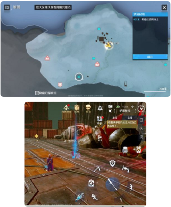 三、前往梦魇秘境(雾夜总部南方)寻找石头三块。进入秘境后点击任务栏,跟随任务指引即可找到石头。