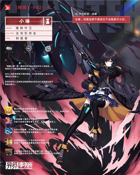 已进入成熟阶段的战争科技“再武装”将于本周四更新维护后开放资料的使用权限,并逐步向参与作战的个体开放操作权限。首批开放再武装的作战单位为:刘米娜、艾力、小琳。其中小琳的再武装开放“红隼”和“鹰群守卫”。