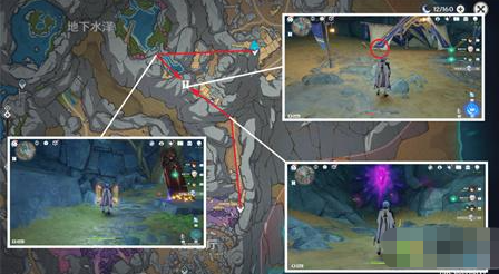1线,来到地下水泽的底部,向西南方向走,可以看到一面墙,它和别的墙...好像也没什么不同,总之用双手剑或者岩元素攻击击碎即可